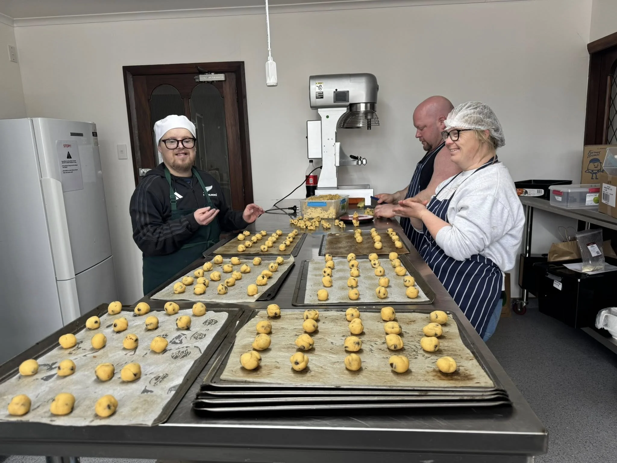 We have set up our bakery in Marton (about 45 minutes from Palmerston North) and we are baking cookies, cooling cookies and packaging cookies. We love our job, we laugh a lot at work, and helping Hamish achieve his dream is the most rewarding thing.